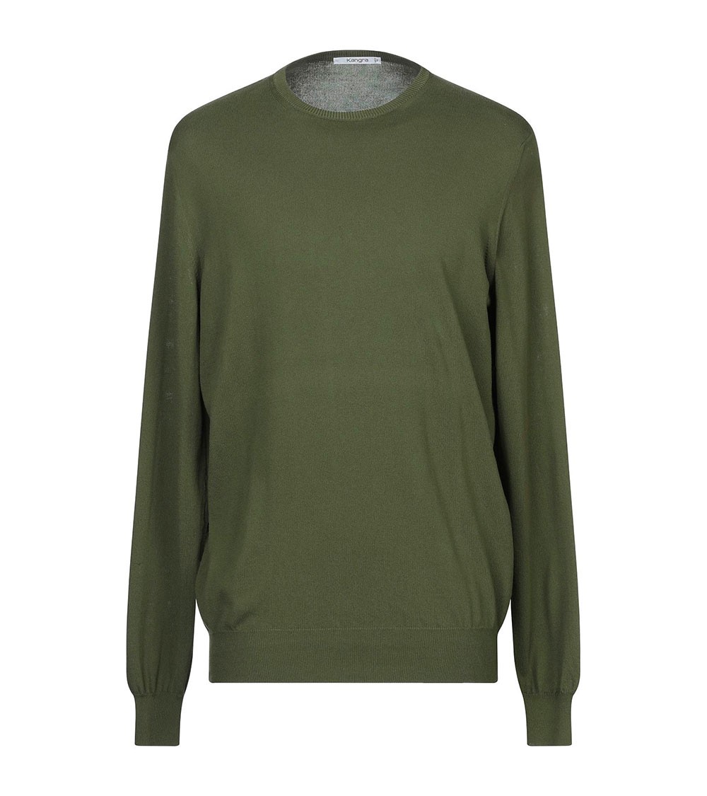 Men's Crewneck Slim Sweater by Kangra Cashmere green loden color.