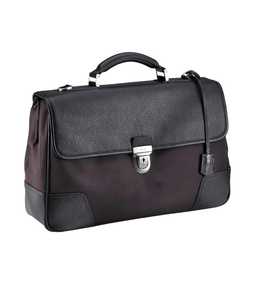 Borsa organizzata Nava in pelle e nylon con portacomputer estraibile da quindici pollici e tracolla removibile.